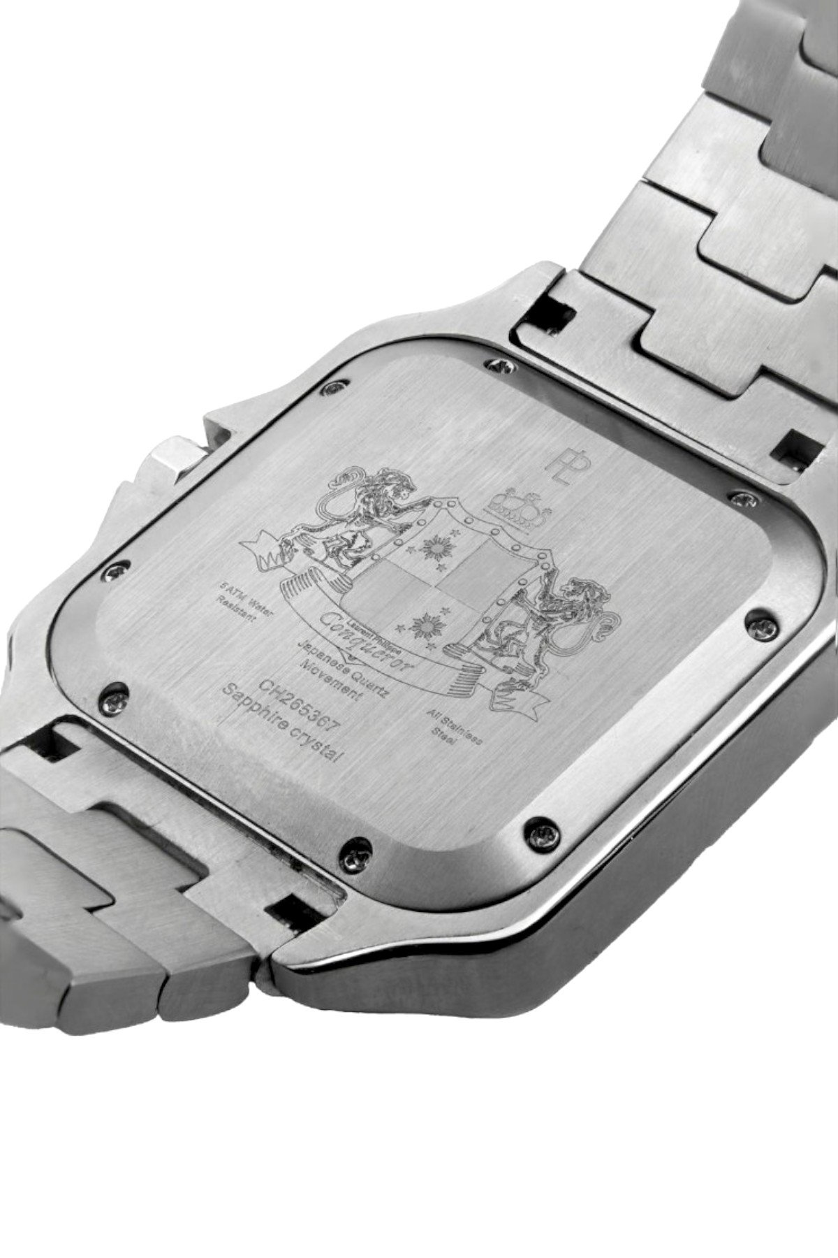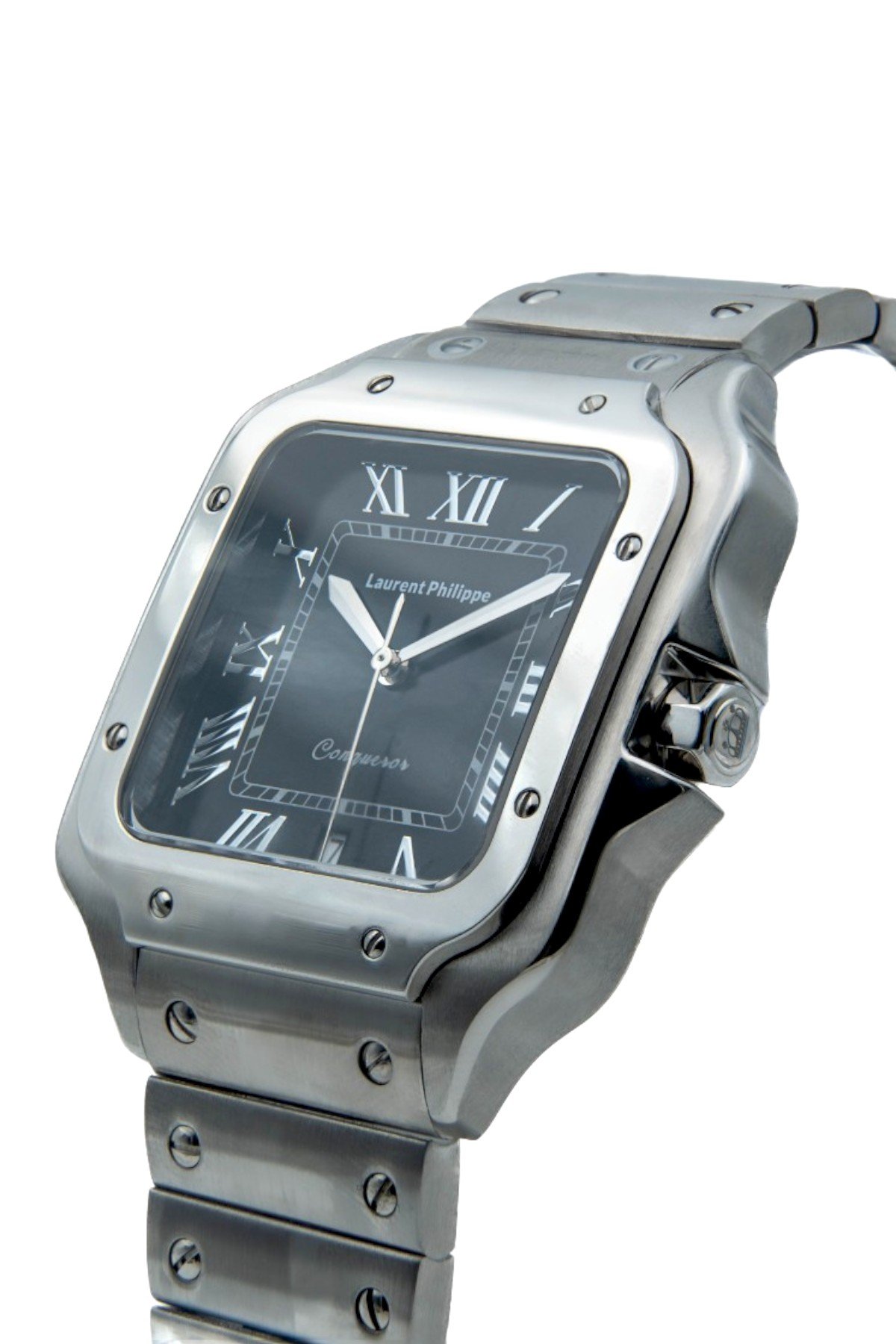 The dial is pure precision: deep black, silver numerals, and an architecture of contrast. Framed in polished steel, it radiates presence without a word. That same material flows into the bracelet — seamless, assertive, and unmistakably contemporary. A statement of power, with nothing left to prove.