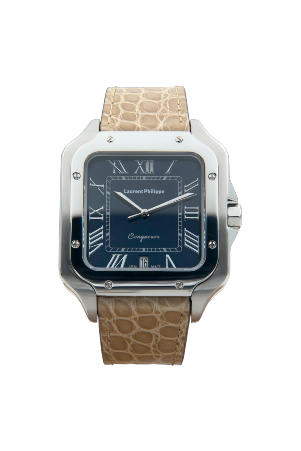 Men €560.00Add to cartLuxury steel watch with white dial and grey crocodile leather strap — a sleek composition of mineral strength, rare patterning, and elevated presence.