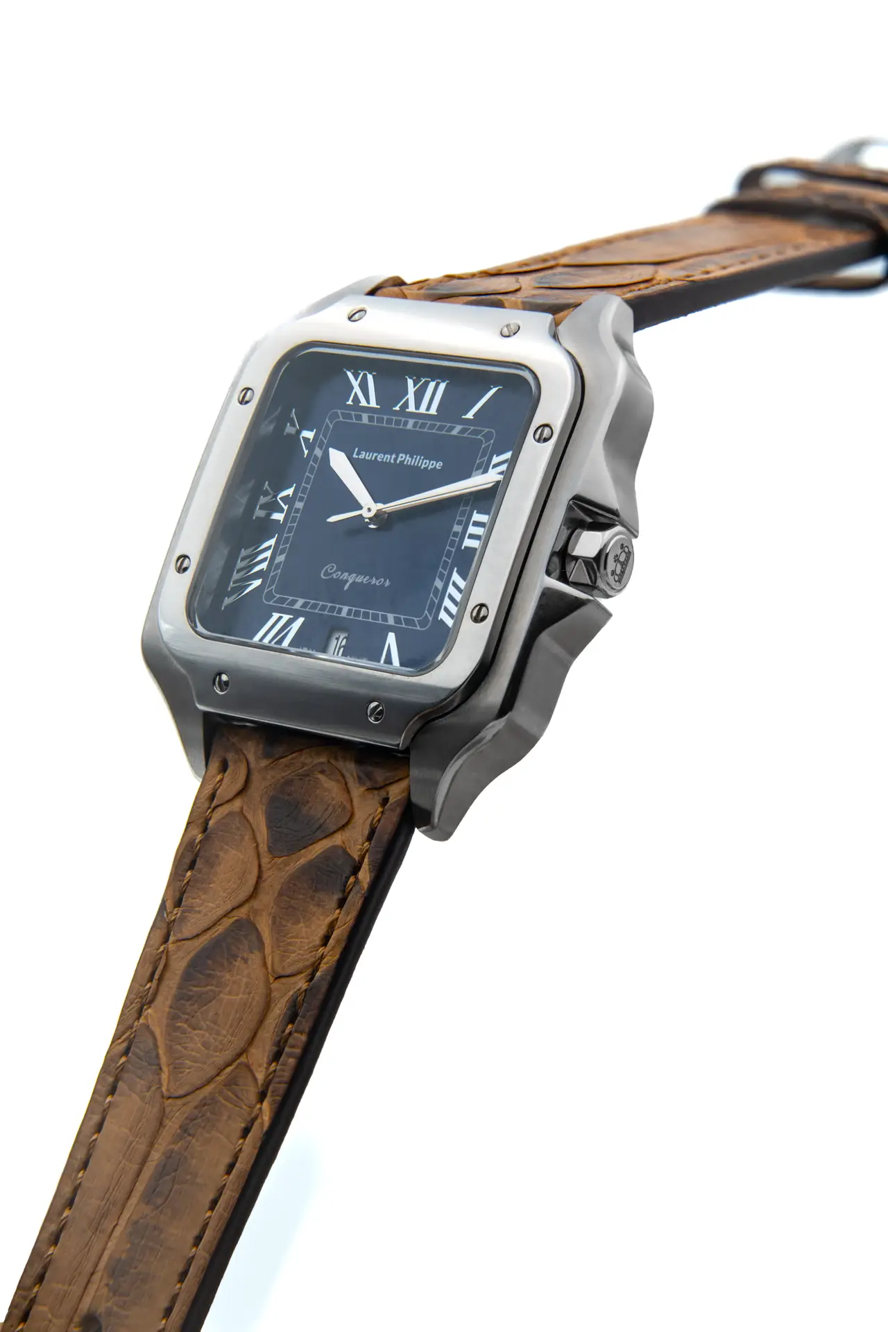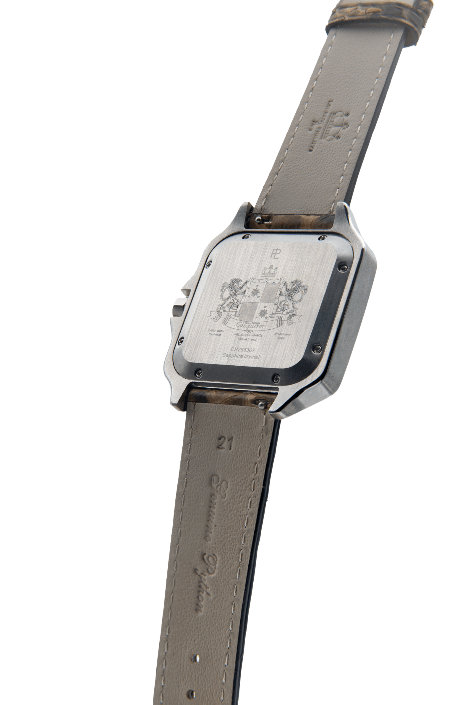 Men €560.00Add to cartLuxury steel watch with white dial and grey crocodile leather strap — a sleek composition of mineral strength, rare patterning, and elevated presence.