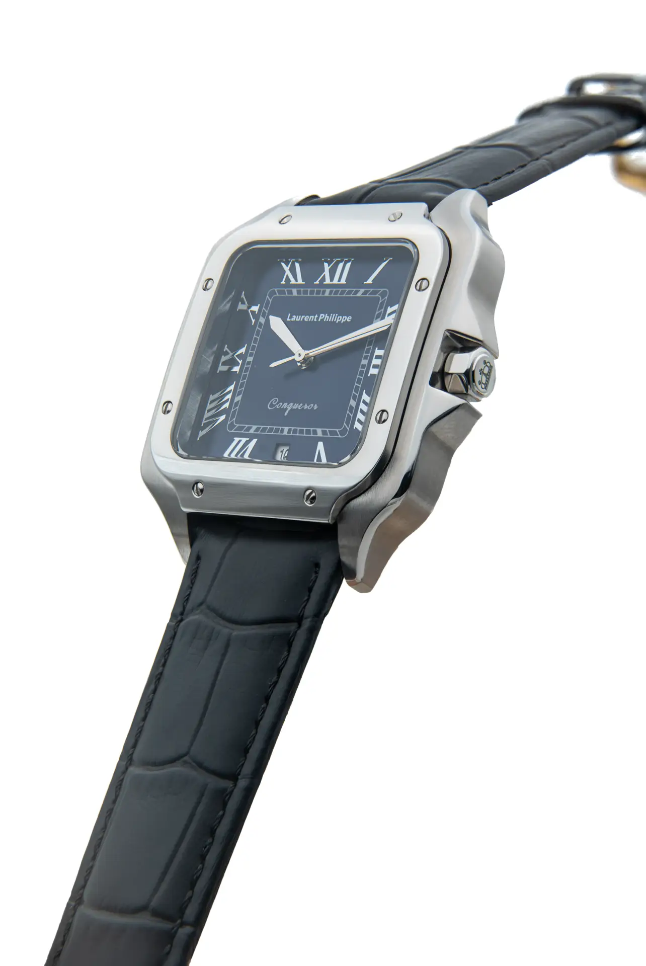 Unapologetically dark. The dial radiates a blue so deep it feels bottomless — a nocturnal gleam with no softness to offer. Paired with the Phantom strap in high-gloss black cow leather, the presence becomes absolute. There’s nothing neutral here. Every element is deliberate, sculpted, and unshakably clear. It’s elegance stripped of gentleness. Energy held in a gloved fist.