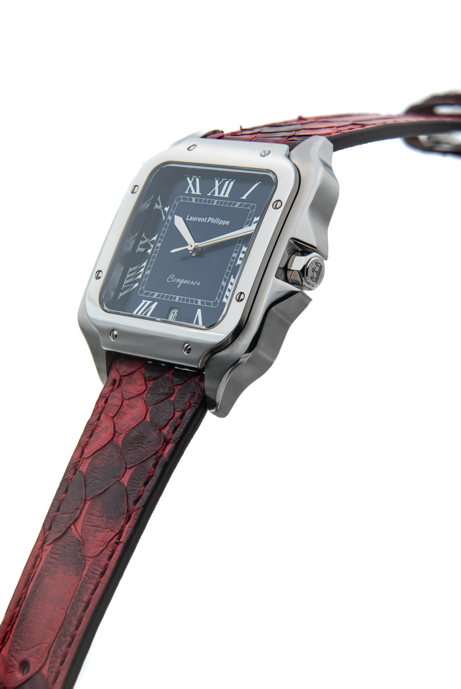 Men €650.00Add to cartLuxury watch with white dial, stainless steel case, and handcrafted red-black python leather strap — a provocative fusion of precision, danger, and allure.