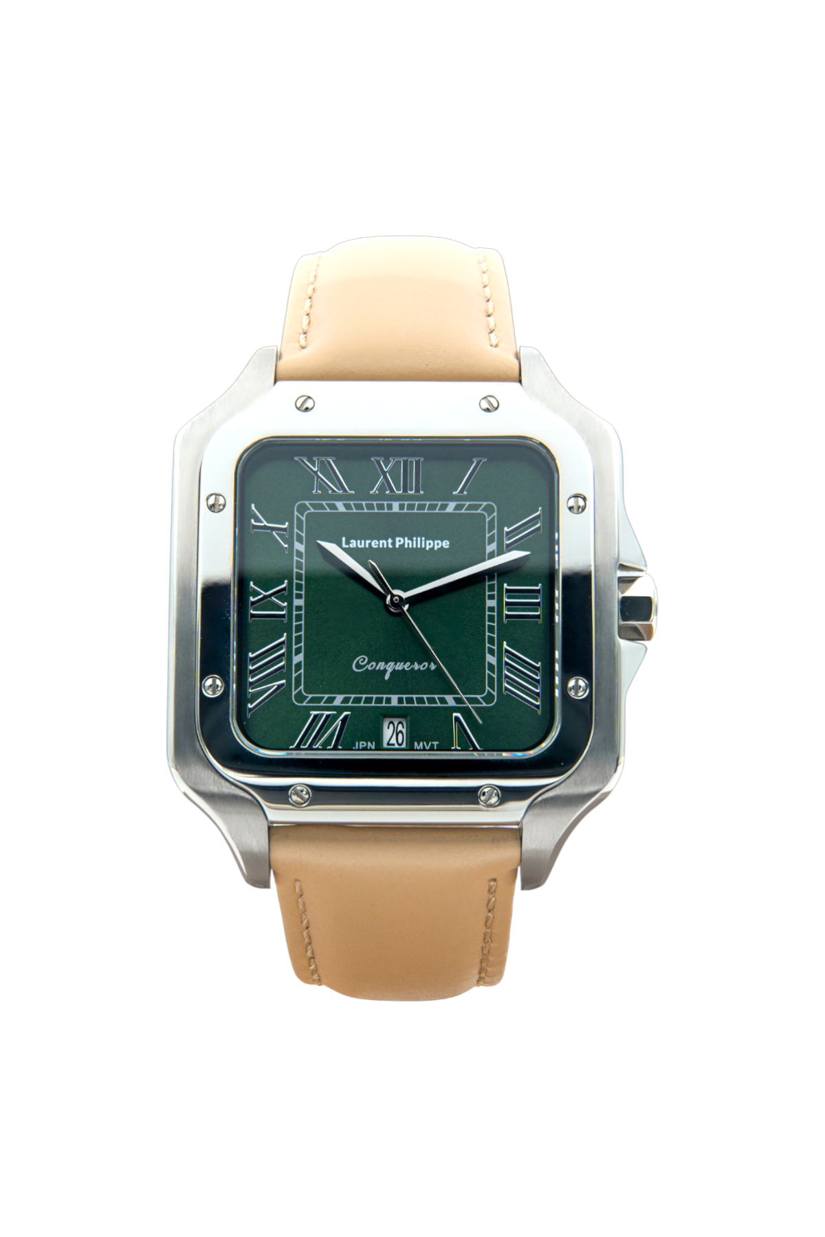Men €300.00Add to cartLuxury watch with white dial, stainless steel case, and handcrafted deep green leather strap — a bold fusion of rarity, sensuality, and timeless intensity.