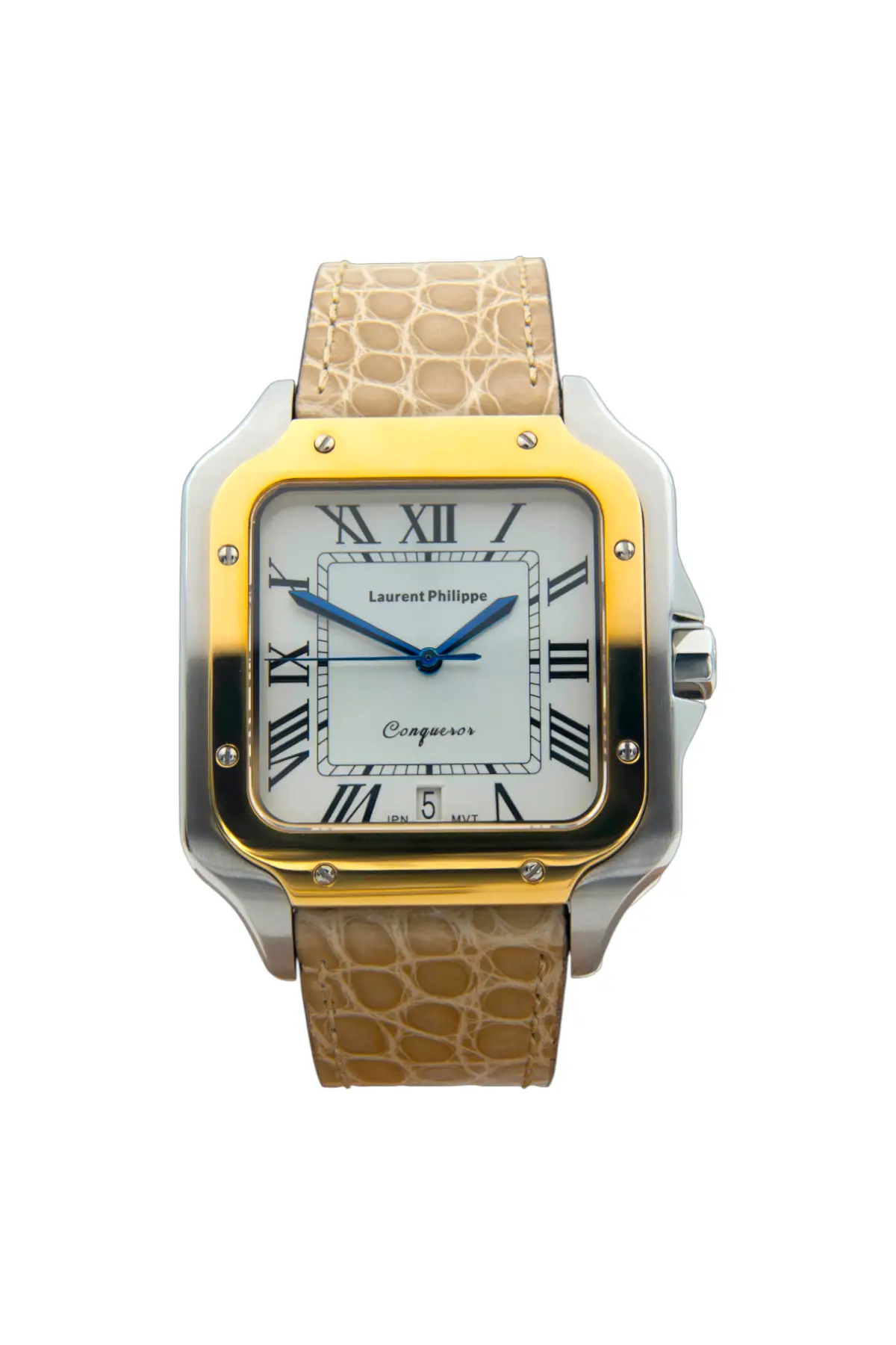 Men €320.00Add to cartLuxury watch with white dial, two-tone case, and handcrafted pale blue cow leather strap — a vibrant fusion of clarity and untamed sophistication.