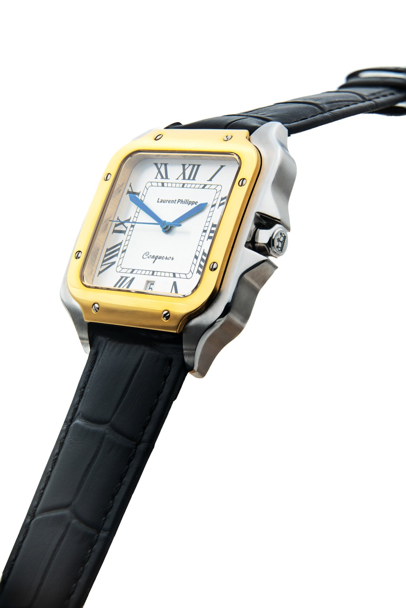 Men €350.00Add to cartLuxury watch with white dial, stainless steel case, and bold light-blue leather strap — a statement of confidence, freshness, and irresistible style.