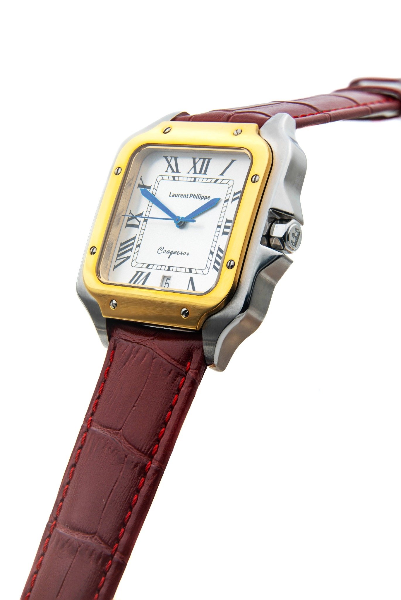 Wild in tone, deliberate in structure. The golden bezel and pristine white dial offer a restrained canvas—until the Rouge Sauvage strap steals the focus. Crafted from genuine cow leather, its deep, impulsive red pulses with untamed energy. There’s something primal in its polish, something fierce in the finish. Like a flash of appetite sealed in metal, it speaks in heat, silence, and precision.