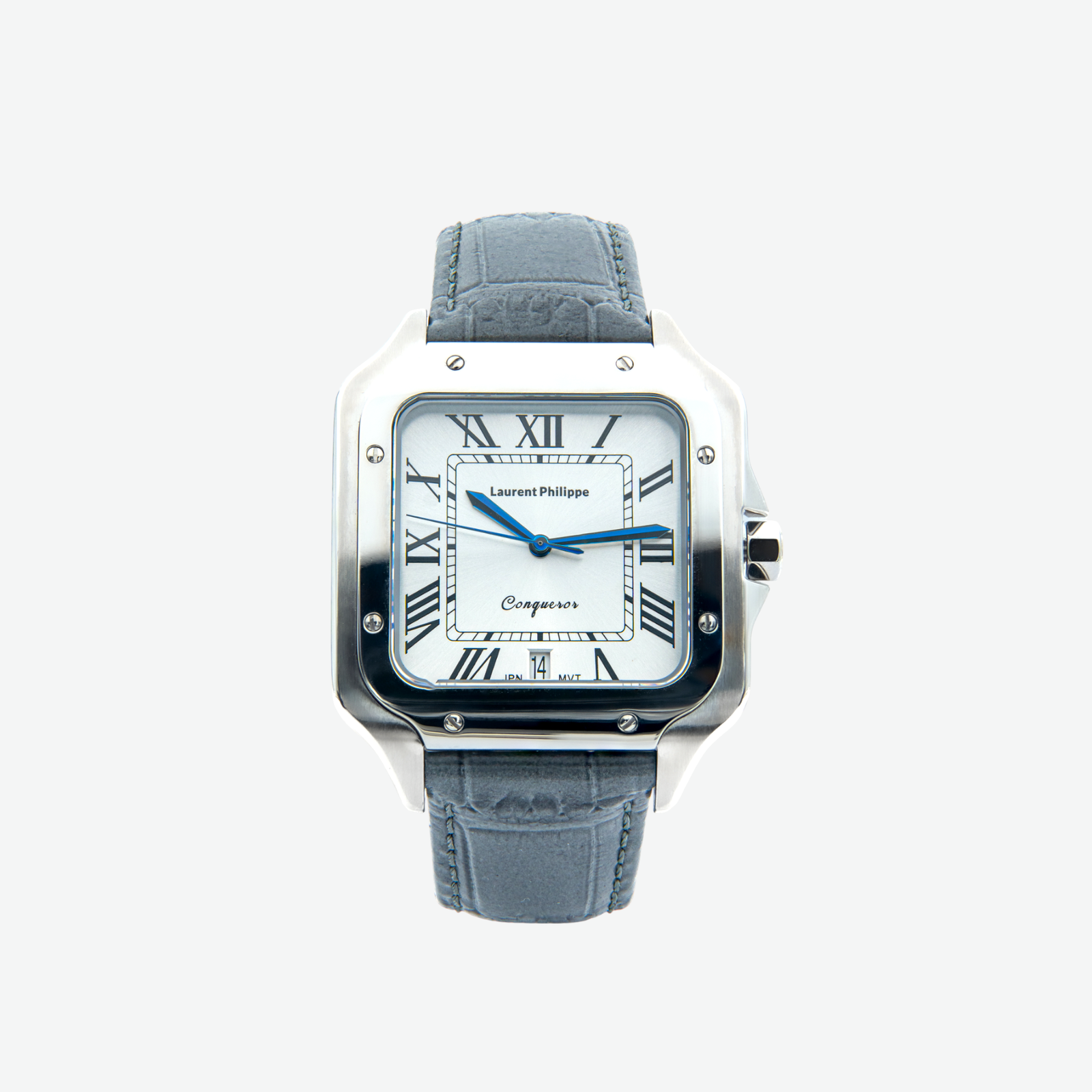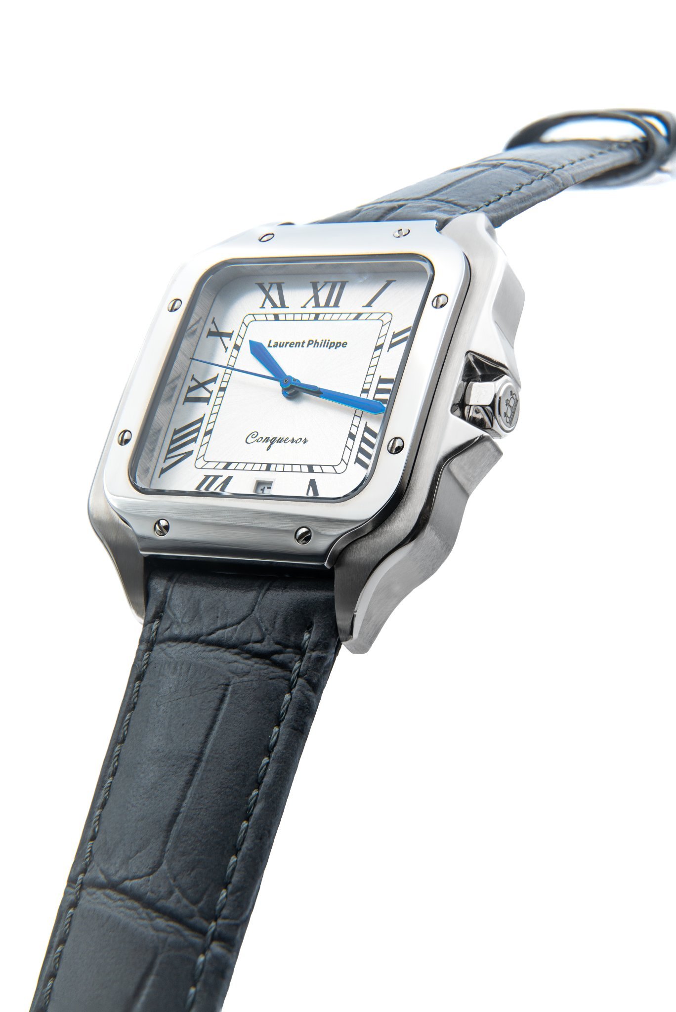 This edition blends crisp visual precision with architectural restraint. The white dial, framed by a polished stainless steel case, radiates clarity and control. Paired with the Gris Absolu strap — handcrafted from the finest cow leather in a smooth, stone-grey tone — the composition evokes silent strength and urban refinement. A timepiece defined by discipline, design, and a cool, unwavering presence.