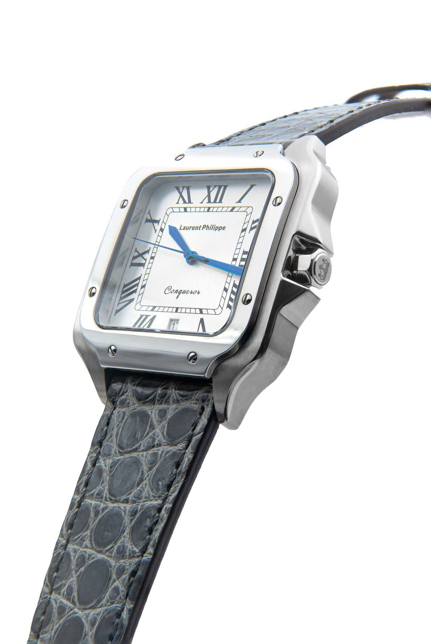 Men €350.00Add to cartLuxury watch with white dial, stainless steel case, and bold light-blue leather strap — a statement of confidence, freshness, and irresistible style.