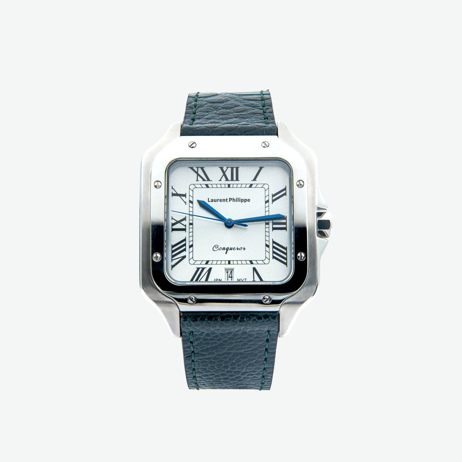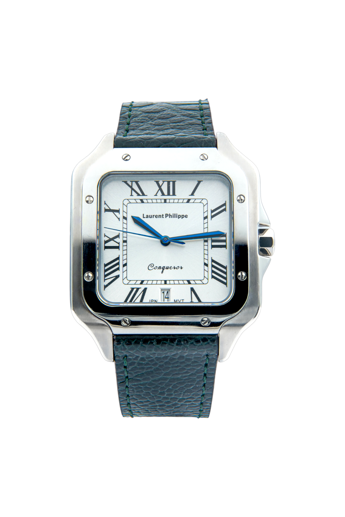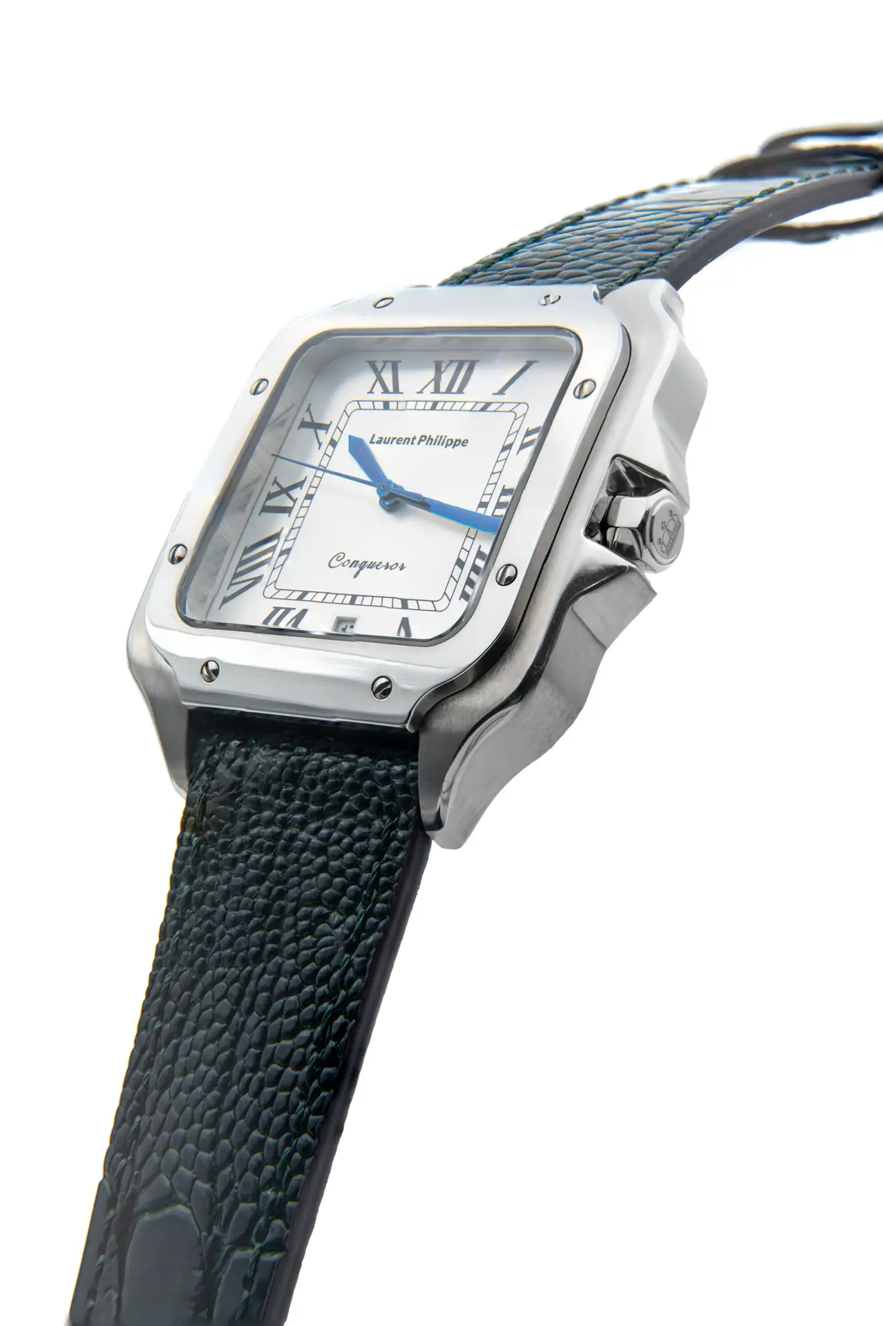 Men €350.00Add to cartLuxury watch with white dial, stainless steel case, and bold light-blue leather strap — a statement of confidence, freshness, and irresistible style.