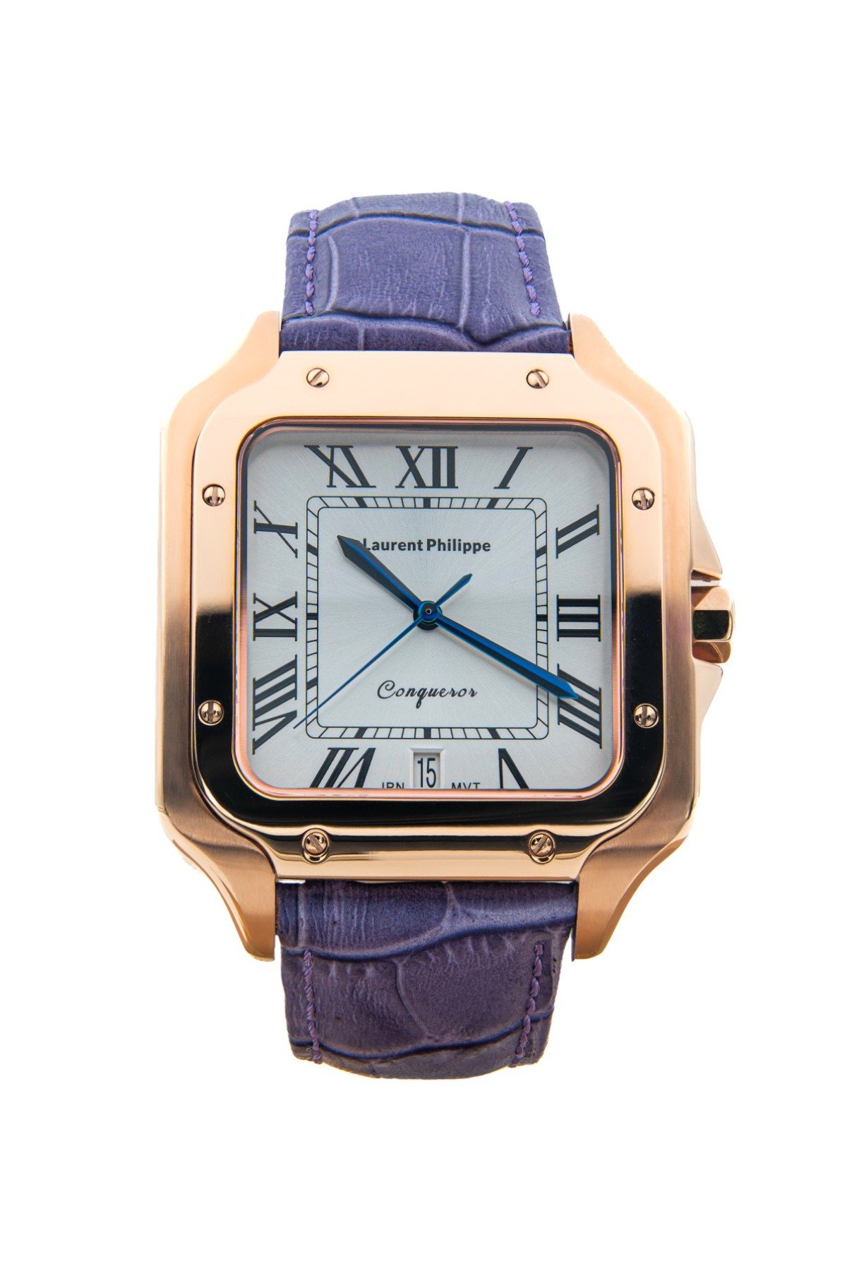 Rose gold watch with white dial and violet cow leather strap — intense, rare, and unapologetically defined.