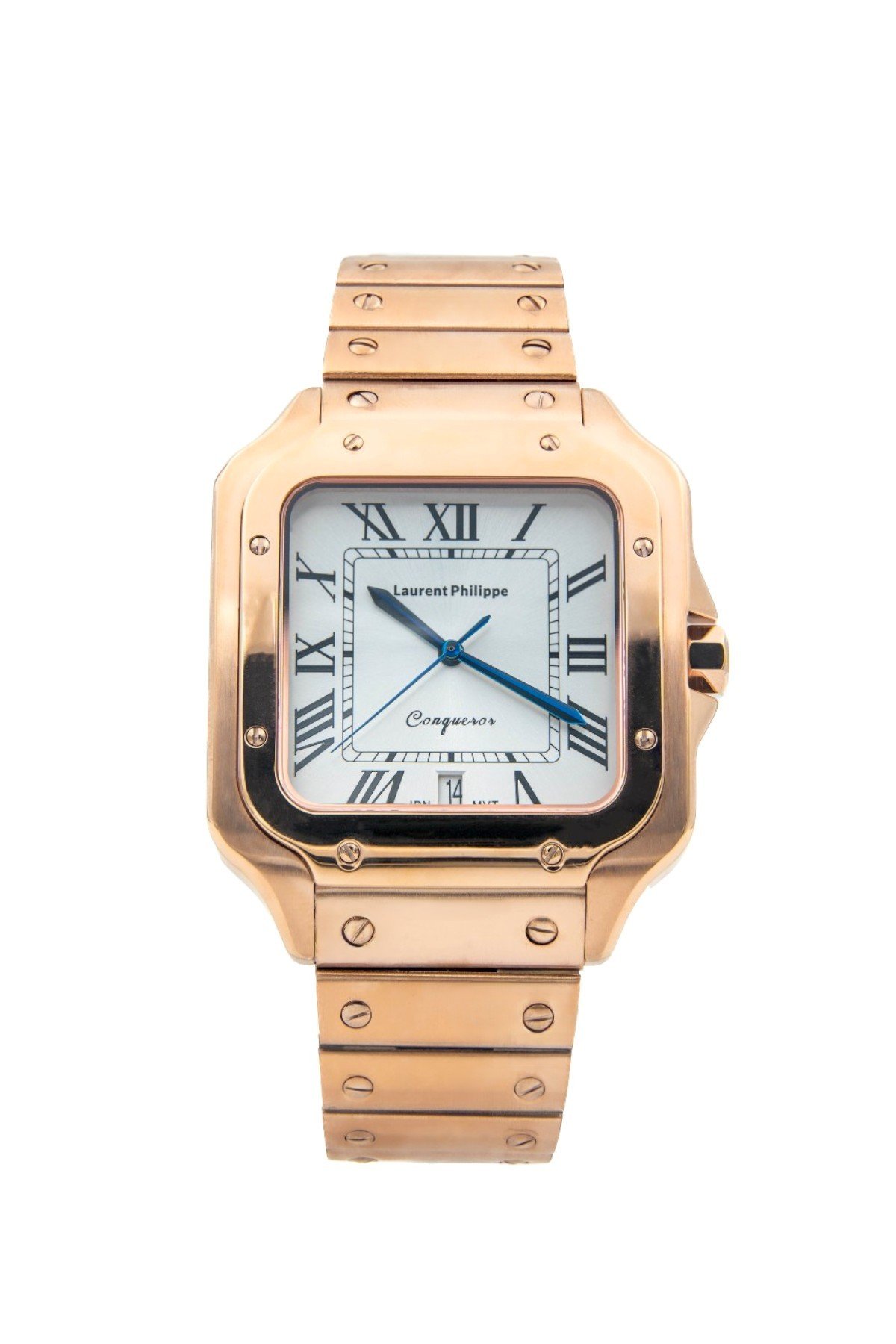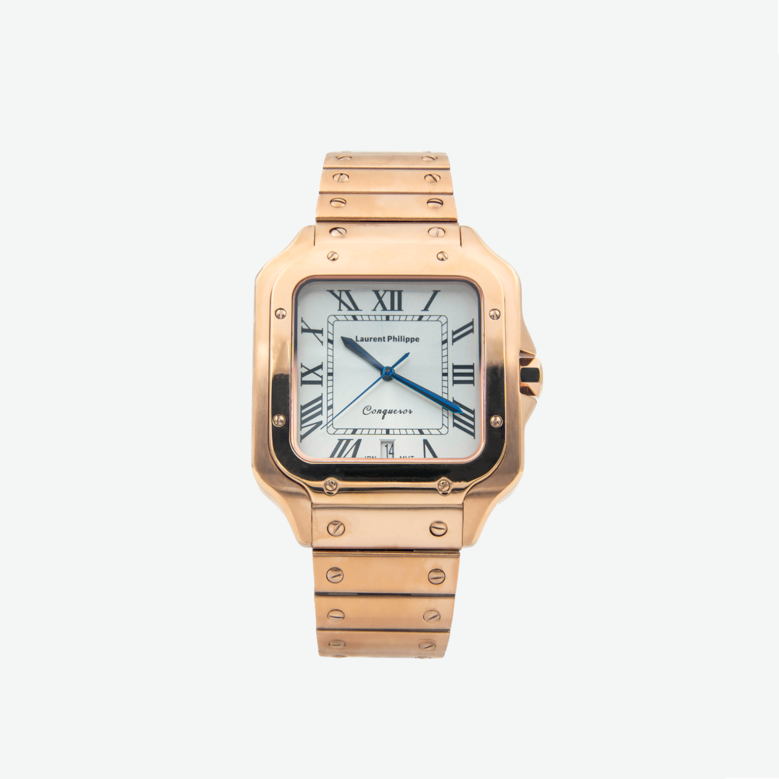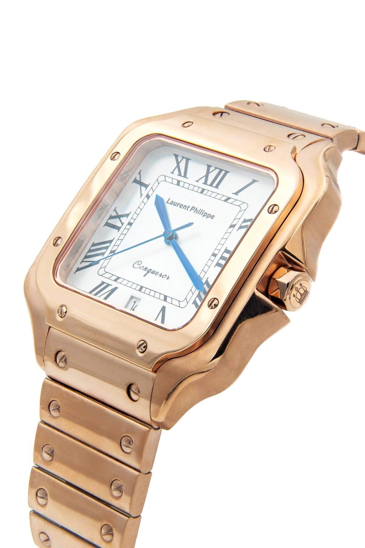 This model strips away excess and sharpens every detail. The rose gold case and integrated bracelet form a unified silhouette — polished, sculptural, and built with intent. The white dial keeps it classical, but the presence is anything but reserved. Vanguard is power redefined: precise, unapologetic, and impossible to ignore.