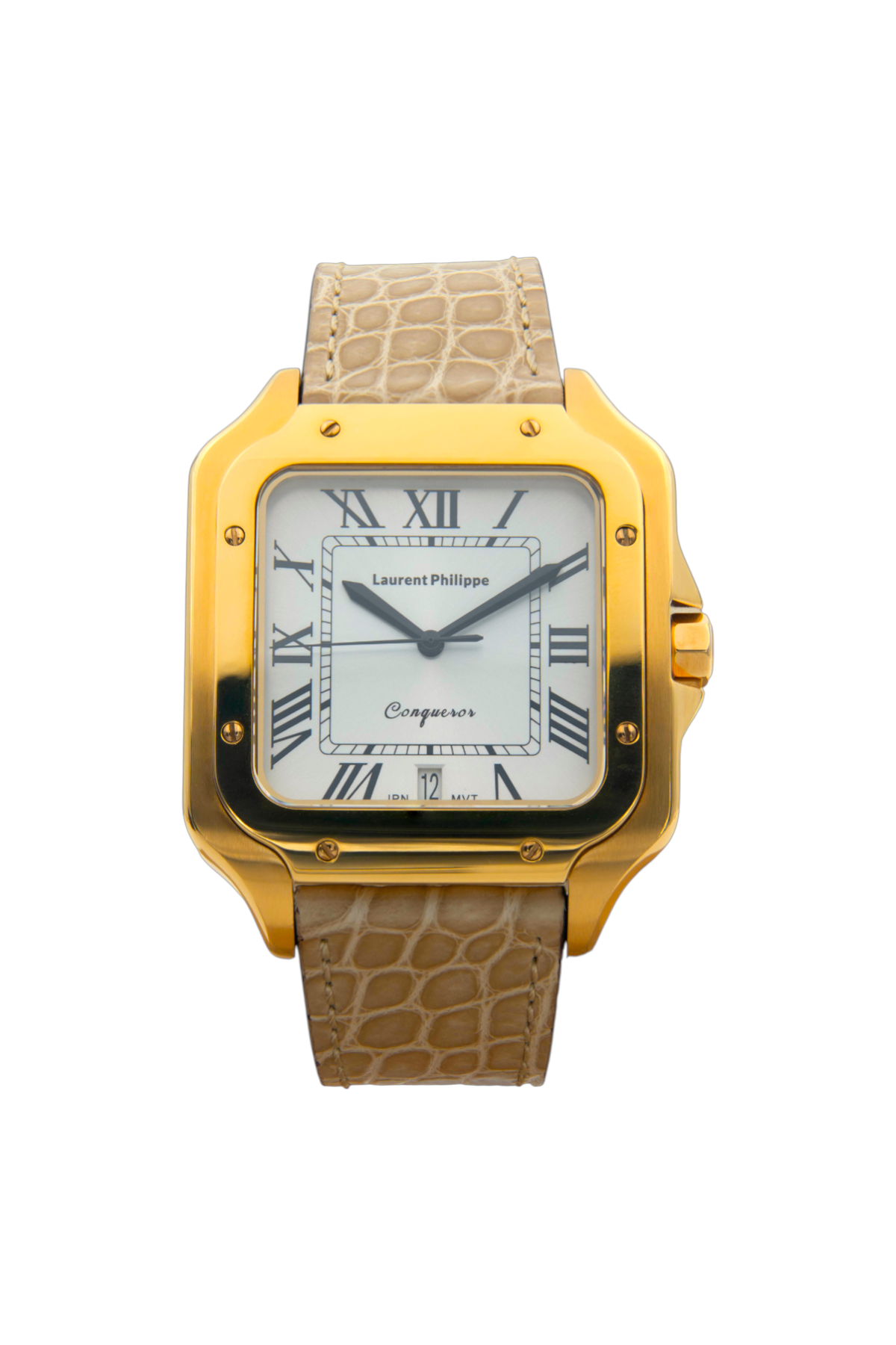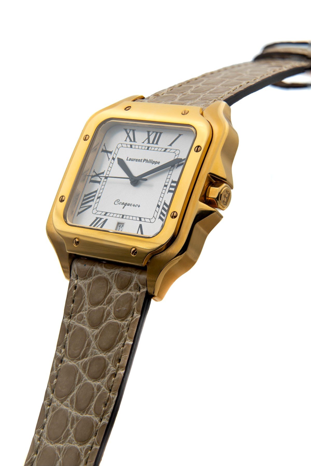 Men €520.00Add to cartLuxury watch with white dial, stainless steel case, and handcrafted brown crocodile leather strap — a grounded expression of elegance and inner resolve.