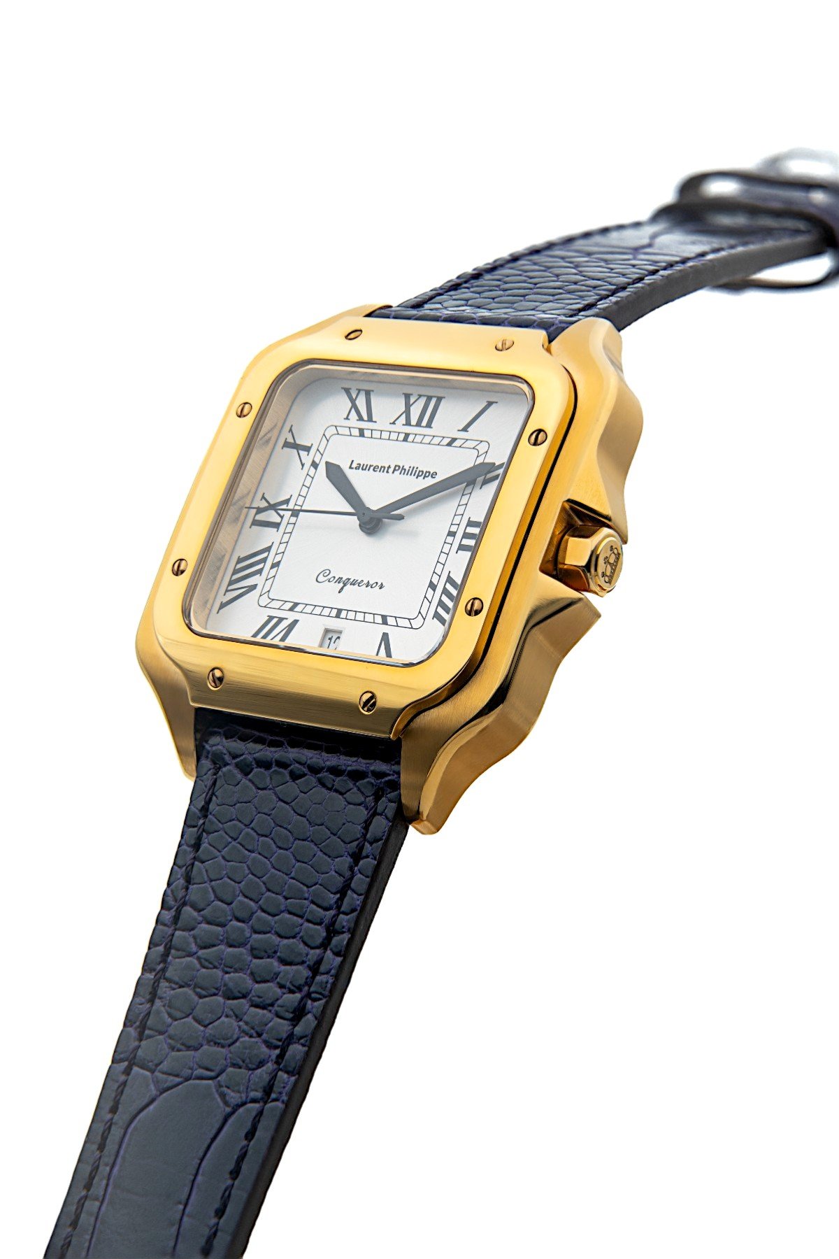 Men €520.00Add to cartLuxury watch with white dial, stainless steel case, and handcrafted brown crocodile leather strap — a grounded expression of elegance and inner resolve.