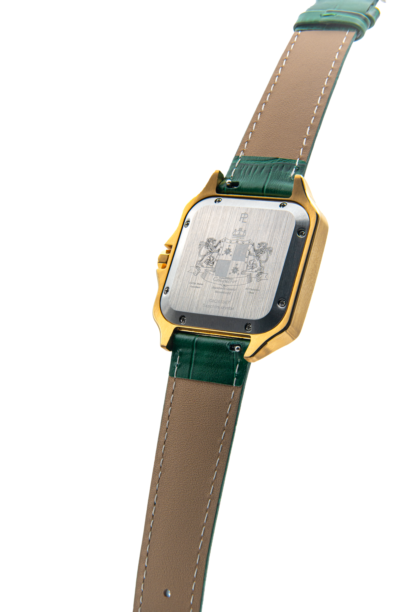 Paired with the Tsavorite Temptation strap — handcrafted from natural cow leather in a rich, emerald green tone.