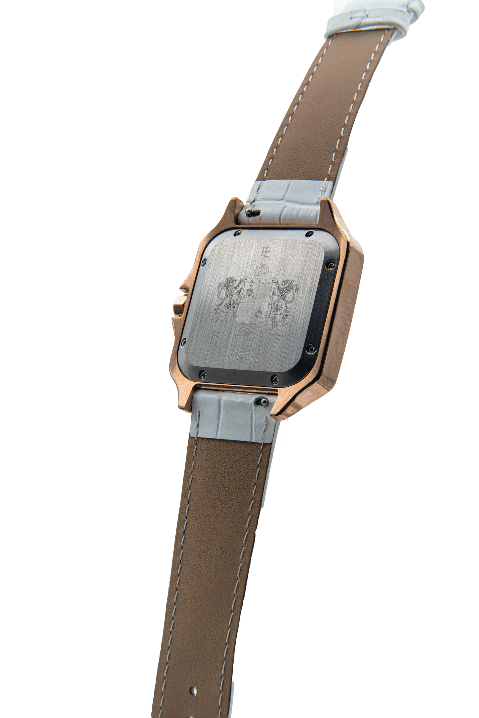 Men €360.00Add to cartRose gold watch with white dial and deep blue cow leather strap — bold, sculptural, and unapologetically distinctive.
